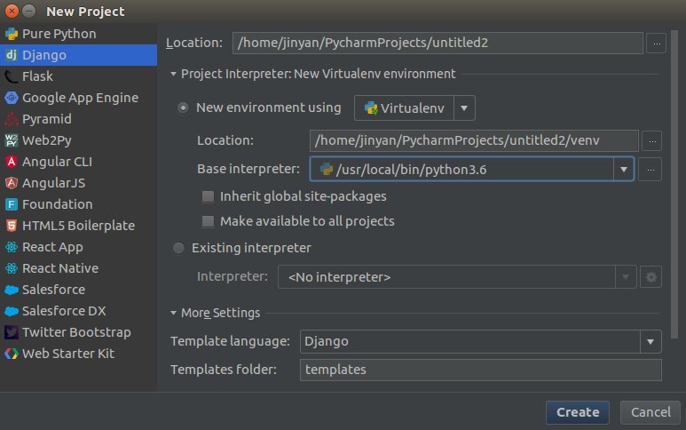 晚上回来装了下Pycharm,决定先试下创建个项目